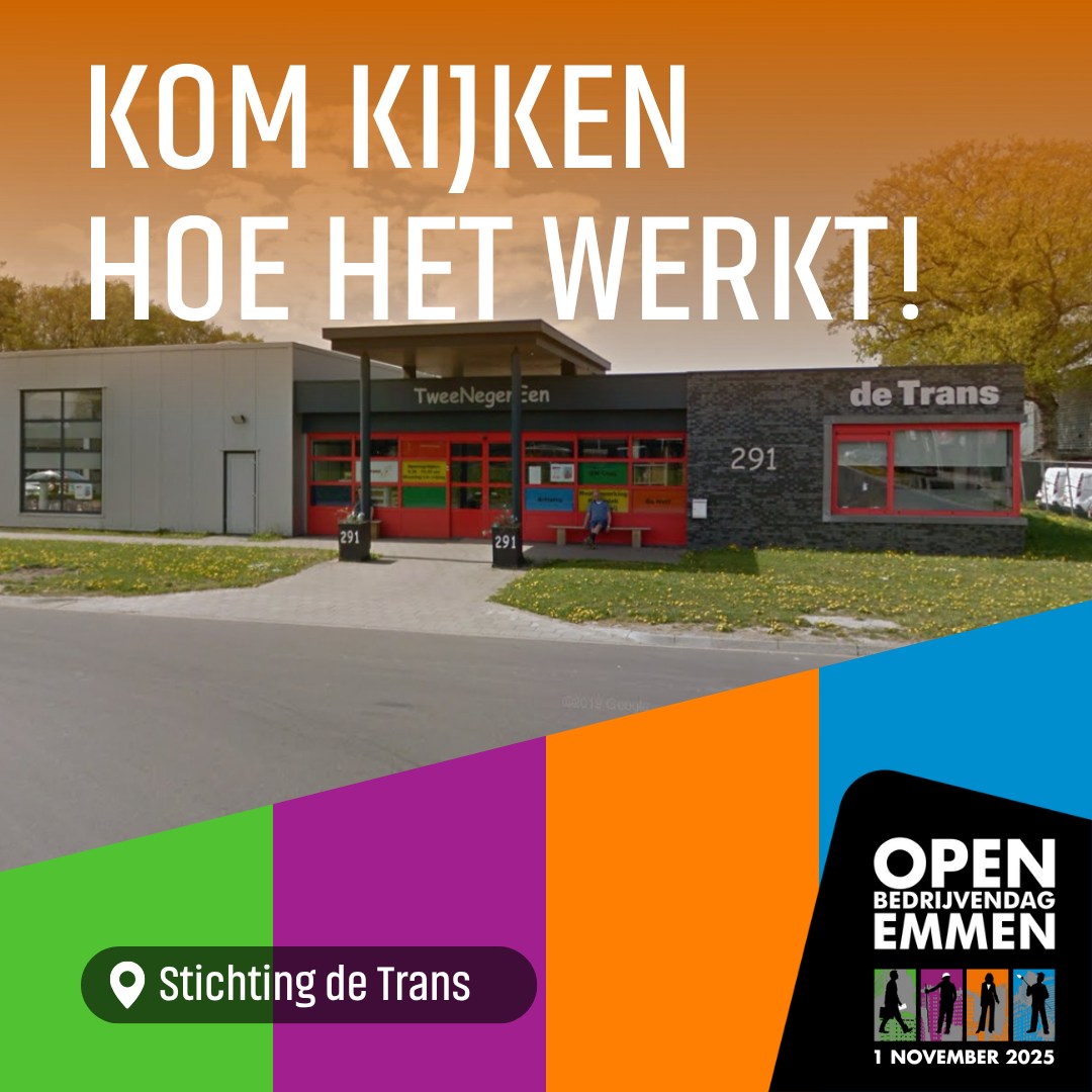 Tijdens de Open Bedrijvendag kan er op de dagbestedingslocatie 291 van Stichting De Trans een kijkje worden genomen in de keuken. Kom langs op 1 november! De afdelingen ArtTerra,  De Nerf en BW Copy laten dan zien hoe ze al die mooie producten maken.