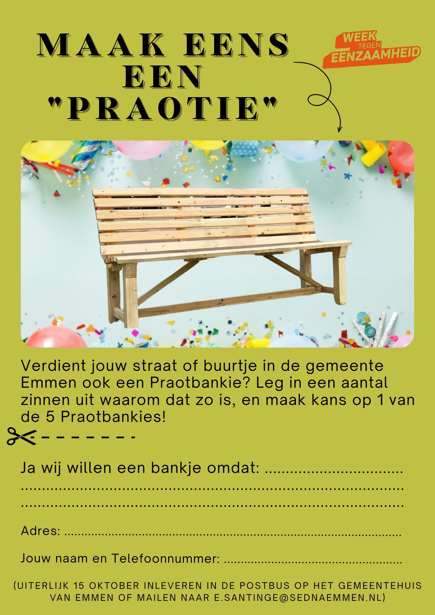 Maak eens een “proatie”. Verdient jouw straat of buurtje ook een proatbankie?
